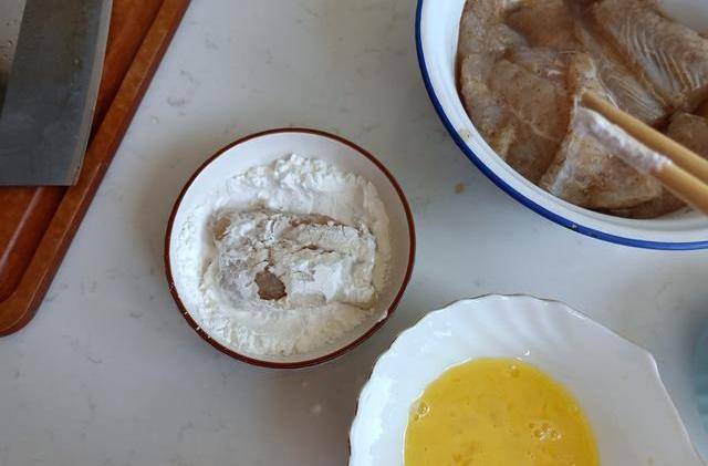 龍利魚柳解凍後切段,加少許鹽、黑胡椒粉和料酒醃制,這個工作我需要稍微提前醃制著。