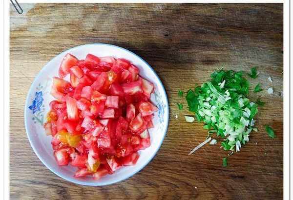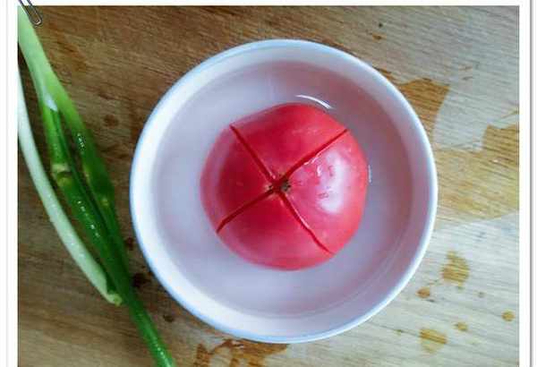首先將西紅柿頂端劃十字,用開水浸泡幾分鐘後去皮,這樣可以保持良好的口感。