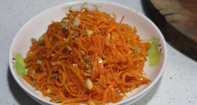 豬肉選有肥有瘦的。步驟二:胡蘿卜切絲,蒜料切碎末豬肉也切成肉末,這樣,小朋友吃的時候肥瘦的都能吃下瞭,也不會塞牙啦!步驟三:鍋內放油,油熱後放入三片薑同時放入蒜末,煸香。放入少些鹽,接著放入肉末,這樣,肉末不會沾鍋步驟四:炒到肉末變色熟瞭後,裝出。留下底油。步驟五:放入胡蘿卜絲。中火煸炒到軟,放入些許鹽。步驟六:放入先前裝出來的肉末碎,翻炒幾下,放入雞精調味即可出鍋裝碟。一碟香噴噴的傢常菜!竅門一:炒菜前鍋子一定要洗幹凈,不然可能會沾鍋的哦。竅門二:鍋子熱入油後,放入少許鹽再放肉末是為瞭避免肉沾鍋。竅門三:煸炒胡蘿卜絲時,要中火不斷翻炒,不要放一滴水,這樣更香。
