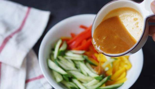 我傢飯桌上必備的涼拌菜,這種做法別錯過,色香味俱全,開胃菜已經改掉愛幫料理亂配色的習慣,但有時還是會不自覺的多帶顆紅椒、黃椒回來,這到底是什麼癥頭XD,這兩顆被我隨手買回來的甜椒,苦等不到出場的機會,在冰箱裡待瞭一個多禮拜,兒子去參加畢旅本想偷懶一下不煮飯,卻發現這兩天自己莫名其妙買一堆菜,齁!!還是得摸摸鼻子進廚房。