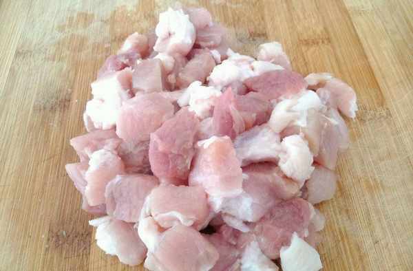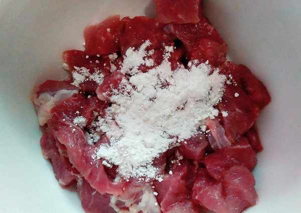 (2)肉加豆粉、加料酒;
