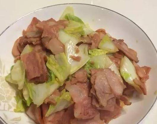 2、熱鍋倒入少量食用油,油熱後放入培根炒兩分鐘左右,放入娃娃菜,翻炒,倒入少量水,繼續翻炒,至娃娃菜熟,放入少量鹽,翻炒均勻即可出鍋。
