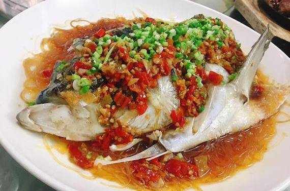 魚頭醃制入味後,再加上秘制的辣醬,然後再放入鍋中蒸10分鐘,味道非常的棒。雖說這剁椒魚頭也常吃,但是它是用當地特產辣椒醬來蒸,制作好後,再淋上熱油,經典的做法,那魚頭上的肉,軟嫩鮮甜,香辣又下飯。
