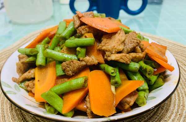 我傢娃就愛吃這菜,豆角清香,胡蘿卜清甜,瘦肉嫩滑,三種食材混合炒出來的味道鮮美濃鬱,味道得到瞭升華。