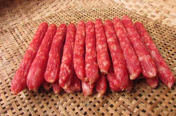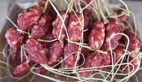 廣式香腸的主要原料是豬的後腿肉,加入食鹽、生抽、白糖、香料等各種調味品,經過一系列更加細致的處理,就完成啦。廣式香腸看起來小小的,色澤明亮,光是看著,就很有食欲瞭,味道屬於咸中帶甜的感覺,在眾多粵菜裡,香腸也占據瞭一定的地位。