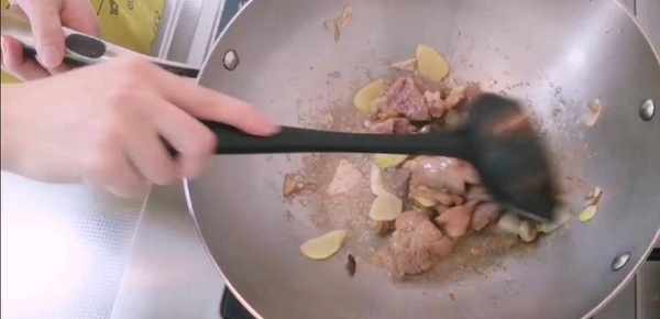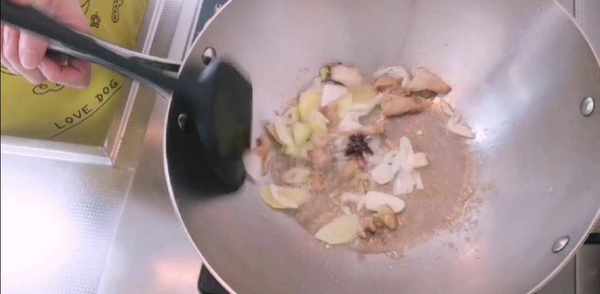 第五:把蔥、薑、八角倒入鍋裡炒出香味。