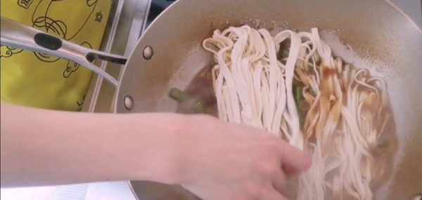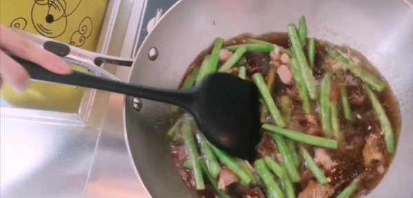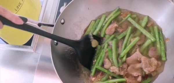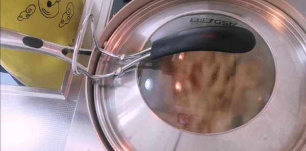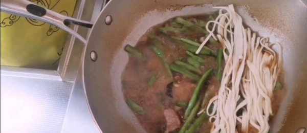 ②這道美味的重點是火候的掌控,不能著急,要用中小火慢慢燜,利用水蒸氣將面條和豆角燜熟。