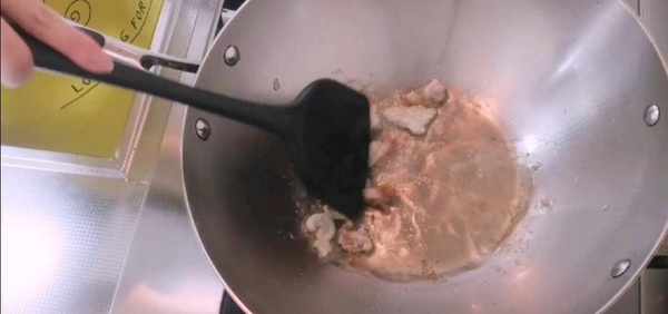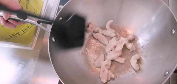 第六:把醃好的瘦肉倒入鍋裡翻炒至變色。
