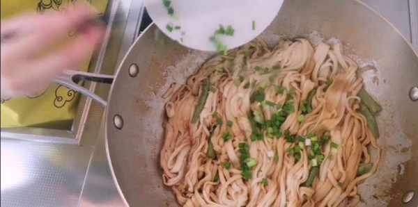 第十二:十分鐘後,撒上蔥花,用筷子把面條劃散,盛出裝盤即可。