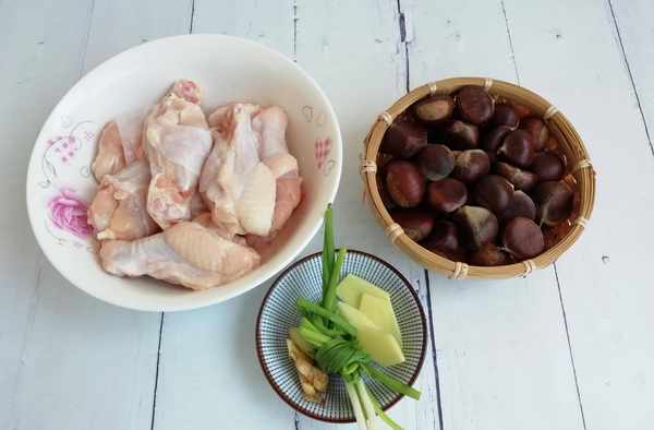 食材:新鮮雞翅根1斤、新鮮板栗1把、蔥結1個、生薑兩塊、花生油40克、鹽3克、生抽15克、蠔油10克、料酒30克、紅燒醬油少許、冰糖少許。