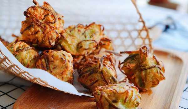 7.我在做這個素丸子的時候呢,是發現蘿卜絲是不怎麼吸油的,所以在炸的時候,要讓丸子之間保持著一定的距離,不然的話是很容易粘在一起的。