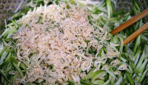 3.把準備好的小蝦皮放進去,攪拌均勻。