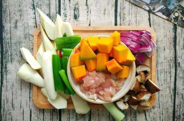 第一步,首先我們把上述所有原料全部準備好,因為食材很簡單,很常見,一般來說超市都能買到,所以很好準備。然後我們先對南瓜進行處理,南瓜用清水清洗幹凈,然後再去掉它的外皮,把南瓜的籽去掉,然後切成小塊放入盤中備用。