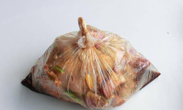 2.然後放入保鮮袋,放入冰箱醃制一晚,中間翻一次。
