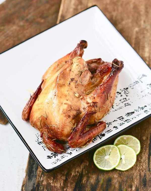 食材:1隻小三黃雞,1個洋蔥,1個青檸檬,8克幹迷迭香。