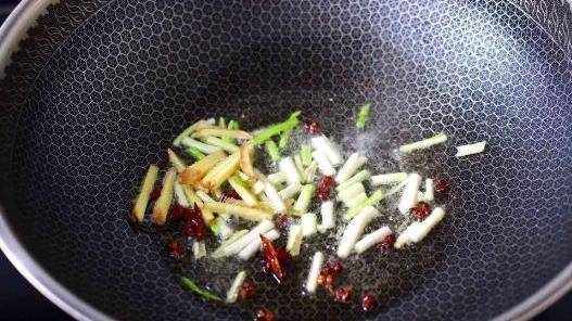 第五步,拿出一個鍋,在鍋裡面放入適量的花生油,等油熱瞭之後就把準備好的八角和花椒放到鍋裡面炒,把它們炒香,然後再放入薑和蔥一起炒。
