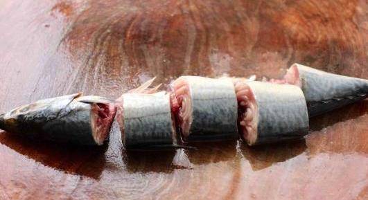 第四步,把洗幹凈的鮐鮁魚撈出來,要把魚的水分瀝幹,之後就用刀把魚都切成一塊塊的。