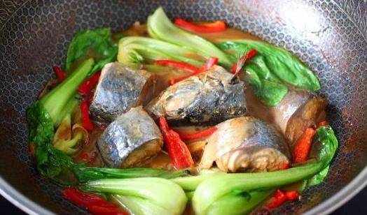 【材料】:鮐鮁魚、啤機、紅椒1-2個、薑半塊、糖1勺、雞精適量、花椒適量、小油菜一把、八角3個、黃豆醬適量、蔥適量、鹽2勺、花生油適量