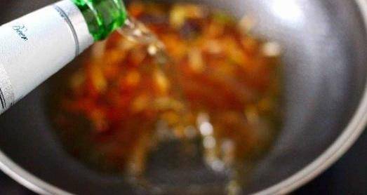 第七步,炒出紅油之後就可以把啤酒都倒下去瞭。