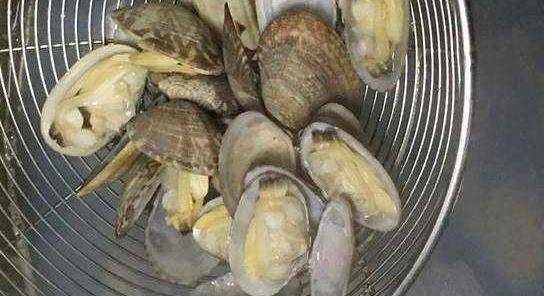 3、燒水,下花甲。註意,花甲開殼就要撈出來。然後再盛出一碗煮花甲的水備用。