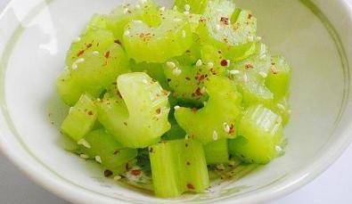 用料:辣椒碎;西芹;鹽;白醋;白糖;藤椒油;熟芝麻
