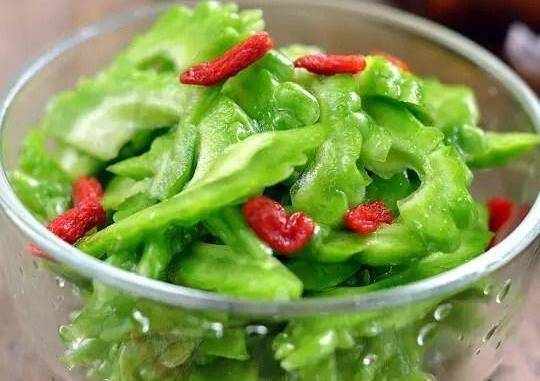 材料:苦瓜、啤酒、鹽、枸杞、白糖、橄欖油、雞精