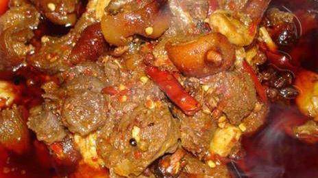狗腿肉、薄荷、白糖、幹辣椒、白酒、蔥、薑、大料、草果、花椒粒、鹽、油、醬油、肉湯