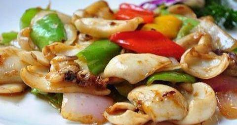 2.取炒鍋2隻,同時置火上,1隻加水1000克左右燒沸。1隻下入熱豬油燒熱,先將墨魚投入沸水鍋中一氽,立即撈出,瀝去水,然後投入七成熱的油鍋中炸至八成熟瀝出,鍋中留底油25克左右,下入蒜、薑、蔥末煽香,倒進墨魚,烹入調好的英汁,顛翻炒鍋,使鹵汁緊包墨魚卷,澆上亮油即成。