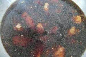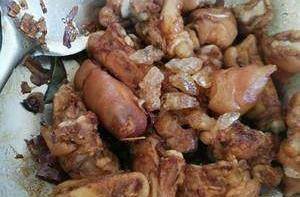 放入老抽(老抽顏色深,沒有經驗的,一定要一點點放入,邊放邊翻動豬腳,一直放到豬腳上基本掛上瞭自己喜歡的顏色),再放入生抽調味。
