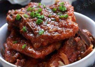 材料:豬大排3塊,蔥少許,薑5片,鹽適量,八角3個,料酒10ml,生抽15ml,老抽5ml,淀粉適量,糖3g。