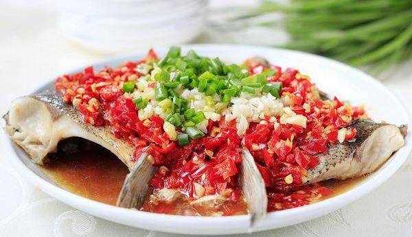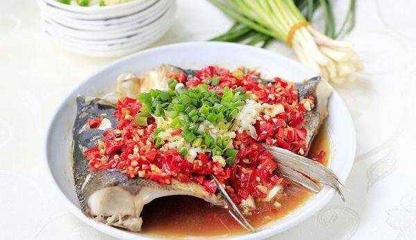 剁椒魚頭是湖南湘潭以及湘贛交界地方的一道漢族傳統名菜,屬湘菜系。以魚頭的“味鮮”和剁辣椒的“辣”為一體,風味獨具一格。據說清朝雍正年間,黃宗憲為瞭躲避文字獄,逃到湖南一個小村子,借住農戶傢,農戶的兒子撈瞭一條河魚回傢。女主人就在魚肉裡面放鹽煮湯,再將辣椒剁碎後與魚頭同蒸。黃宗憲吃完特別喜歡,從此就對魚頭情有獨鐘。後來,他讓傢裡廚師加以改良,就成瞭今天的湖南名菜剁椒魚頭。