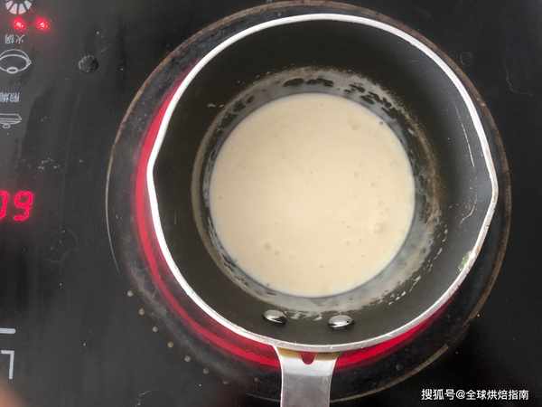 ▶step017::淡忌廉加麥芽糖家加熱至沸騰。