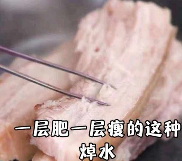 1、選取五花肉的時候,一定要選取這種3層的,一層瘦的一層肥的選擇,這樣做出的脆皮五花肉才會口感分明、香味濃。起鍋燒水,涼水把豬肉放入鍋中,水開焯4分鐘,把浮沫撇掉,鍋中的水備用。