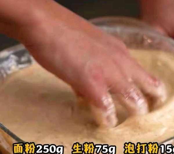 7、接下來就是糊的制作瞭,把上面的東西按照順序多少放入一個盆內,攪拌均勻即可。椒鹽、花椒面、辣椒面可以按自己的口味去放,註意不要太多,就算淡瞭,也可以後續蘸這些調料。