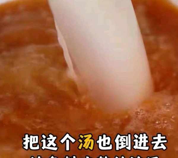 3、把剛才煮五花肉的湯倒入鍋中,本來鹵水是要用高湯制作的,但是傢中不用這麼麻煩,就把焯五花肉的水倒入鍋中即可。