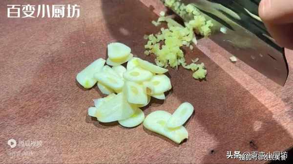 春筍好吃的關鍵所在,所以可以多準備一點大蒜。再切上一點生薑,先切成薄片,再改刀切成細絲,改刀切成生薑末,收入盤中幾根小蔥,蔥白處,我們把它斜切成段,斜切的時候有利於蔥段的香氣更容易散發出來。