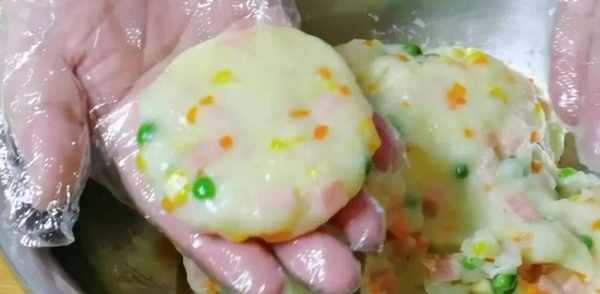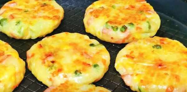 這道土豆可以做下飯菜吃,也可以做零食。像我就把它當做下飯菜做給孩子們吃,傢裡有挑食的孩子的可以試試這道做法。土豆跟蔬菜結合,味道鮮美,口感也很軟糯,不熟蔬菜的就做這個來吃, 營養又健康。這是做成餅一樣的外觀,不過裡面不加面粉,純純土豆跟蔬菜混合制作的,土豆香濃鬱,蔬菜是什錦那種,有玉米、胡蘿卜、青豆,都是營養豐富飛蔬菜種類,有其他喜歡的也可以替換。