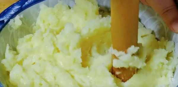 8.蒸熟的土豆取出來,用工具把它搗成泥。什麼都不用加瞭。