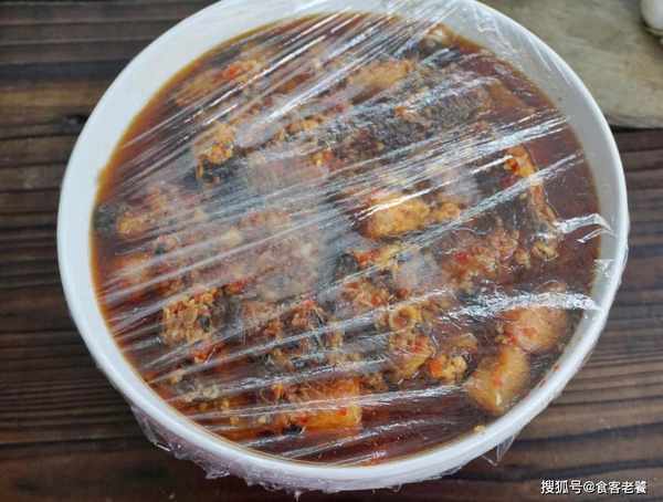 一直翻炒至水分全無,魚和調料完全攪拌均勻即可。再將翻炒後的魚塊裝出放涼,用保鮮膜密封好。密封2天之後,酒槽魚就非常入味瞭,這時候也是最佳食用的時候。