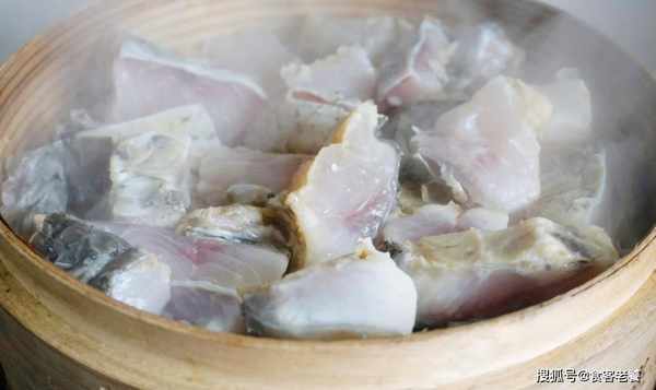 接著將醃制後的魚塊,放入蒸籠裡蒸30分鐘,最好是將魚皮朝上擺放,這樣才不容易粘底,蒸好後放一旁晾涼備用。