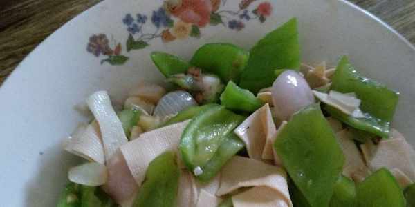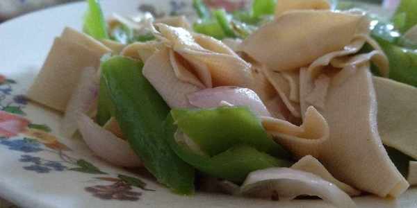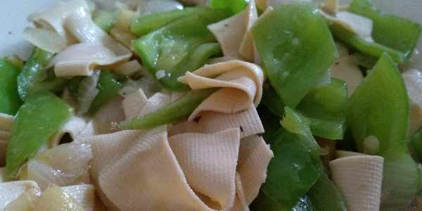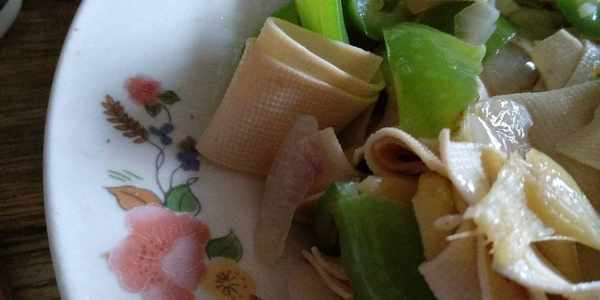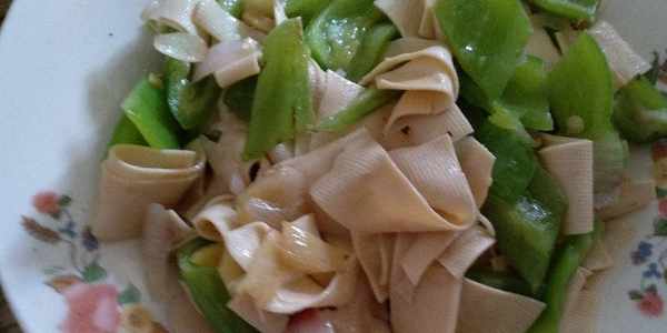 這就是東北經常吃的尖椒幹豆腐。雖然看上去很平常,但吃起來確實很美味。