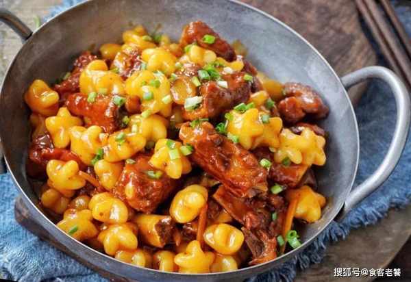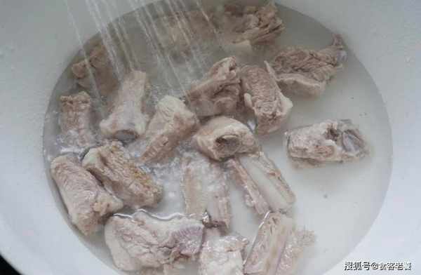 選用新鮮豬肋骨,切成大小均勻的段兒洗凈後,冷水下鍋焯水。焯水後撈出,並用溫水沖洗幹凈瀝幹水分。