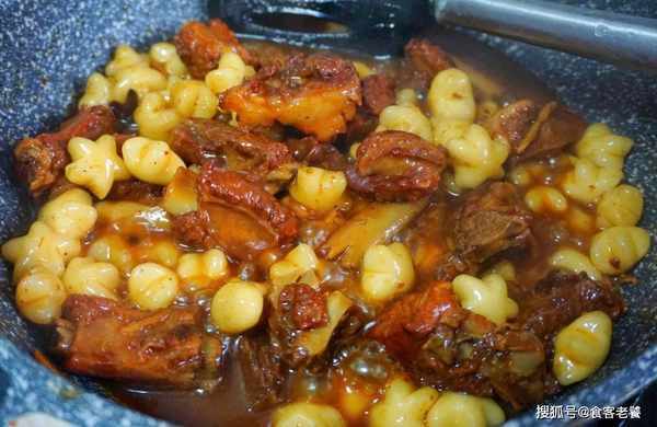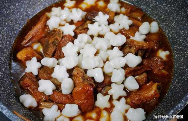 鍋內倒入開水,水量要浸沒過排骨,接著蓋上鍋蓋轉小火慢燉。燉至排骨熟爛,且湯汁還剩三分之一的時候,根據自己的口味放入白糖、食鹽調味,再放入年糕。
