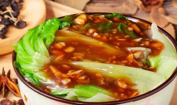 5、鍋裡加上一定量的食用油,油溫升高之後把蒜末放進去,不停翻炒。等到把大蒜的香味炒出來之後,再往鍋內倒入剛才調制好的料汁,繼續不停攪拌就行瞭。直至湯汁濃鬱的時候,就可以關火瞭,趁熱澆在生菜上即可。