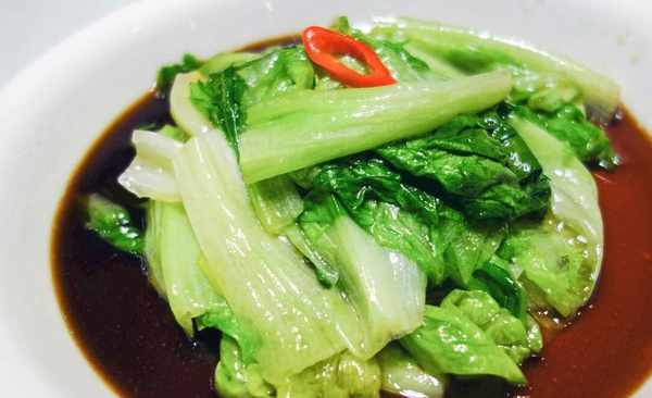 【蠔油生菜】用料:生菜、大蒜、鹽、白糖、生抽、蠔油、淀粉、食用油