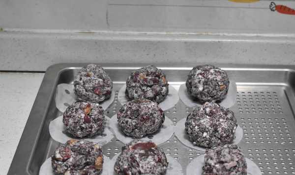 第五步把電飯煲裡的食材搓成小圓球,放在蒸盤上,蒸盤刷一層油或者放烘焙紙防粘。