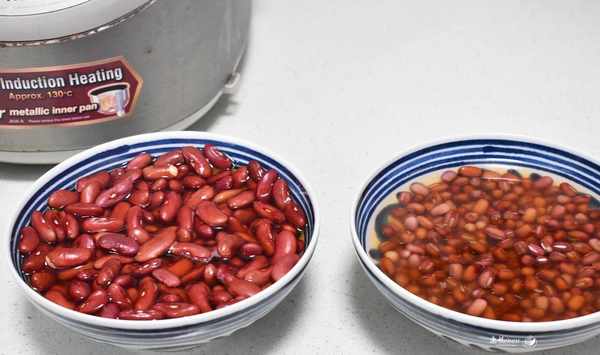 第一步紅腰豆和紅豆提前用水浸泡,紅豆質地比較硬,浸泡後容易煮軟。紅腰豆和紅豆都是豆類,紅腰豆和紅豆都可以用來煮飯煮湯,紅腰豆和紅豆都有利於促進腸胃蠕動,潤腸通便,幫助消化的作用。