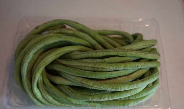 1、準備好豆角,豆角用的是這種長豆角,在我們這邊也叫做是豇豆角,掐去兩端洗幹凈備用。
