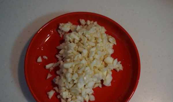 3、準備好大蒜,然後剝皮之後切成蒜末備用。