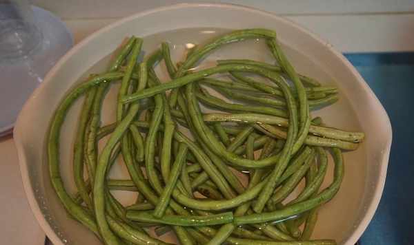 3、豆角一定要在開水中煮熟瞭,半生不熟的豆角是有毒性的,煮熟之後的豆角要瀝幹水分不然拌好的豆角裡面水分太多就不入味瞭。